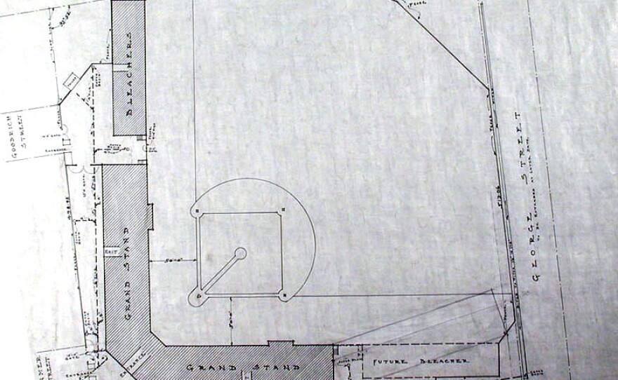 Erected in 1874, Hartford’s earliest baseball stadium was the Base Ball Grounds in Colt Park, on the corner of Wyllys Street and Hendricxsen Avenue. This once-state-of-the-art park could hold 2,000 attendees in bleachers and grandstands around the foul lines. Horse-drawn carriages could park at the edge of the 600 by 400 foot field. The sale of liquor and gambling was prohibited.