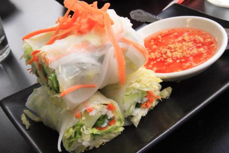 Years ago in southern California, at ocean-side Montage Resort, I ordered the same thing for six lunches in a row—Thai summer roll with dipping sauce. It was a knockout, and now we can tell you how to make delicious ones at home. We can tell you how thanks to a respected chef, Gale Gand, author of Gale Gand's Lunch! As Gale told us, she learned from a Thai woman who was making them as fast as she could manage for thousands of hungry fans at the Lolllapalooza music festival. And wait till you try her watermelon gazpacho.
